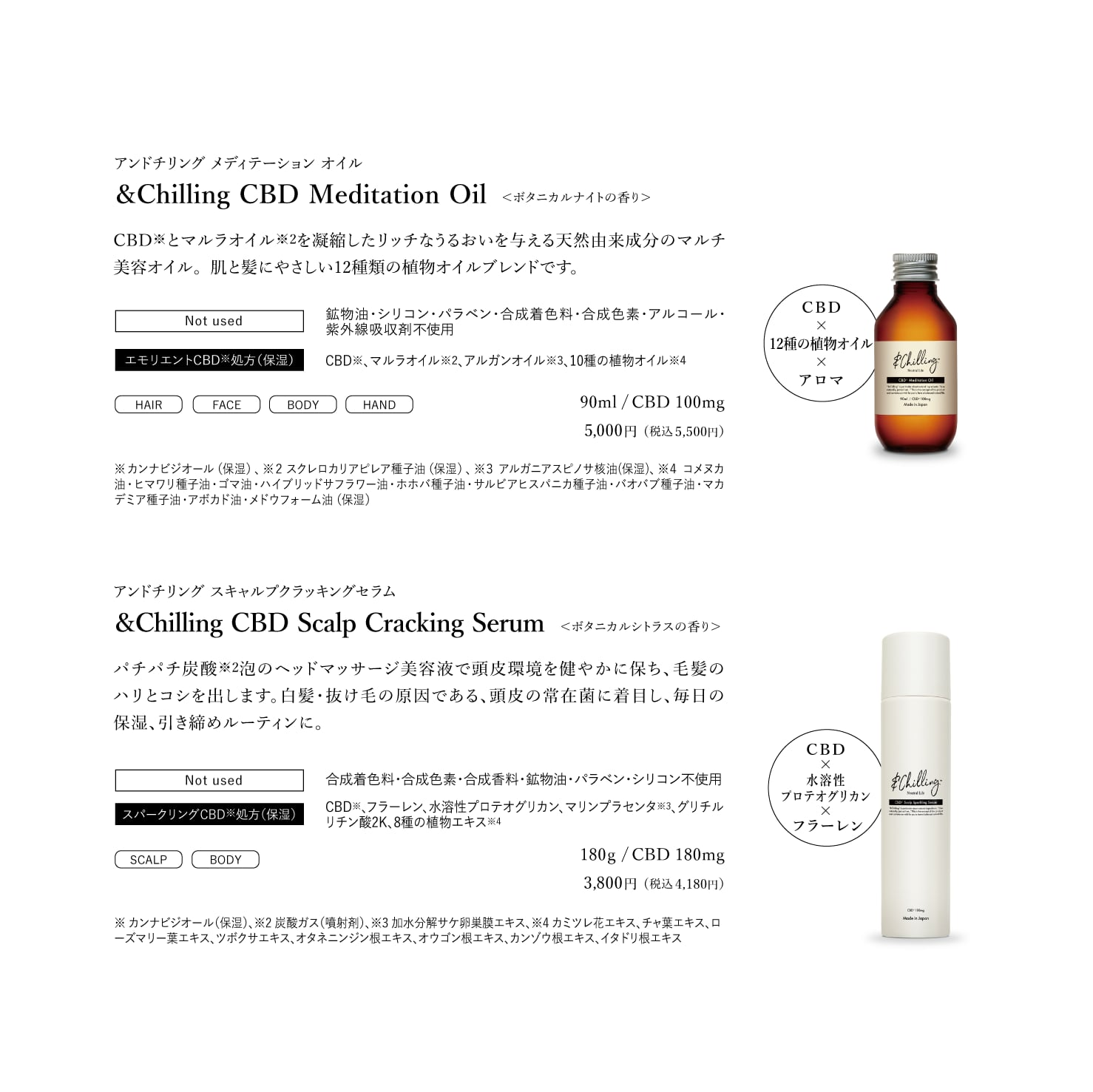 CBD※、マルラオイル※2、アルガンオイル※3、10種の植物オイル※4